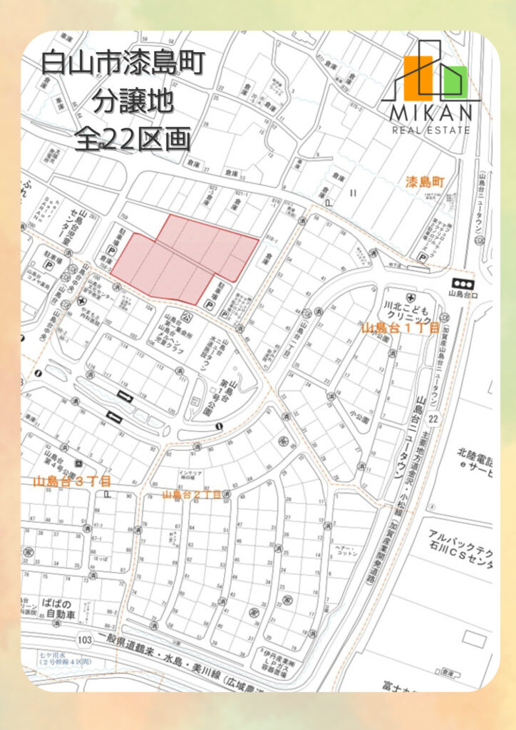 北鉄バス 「山島台中央」バス停 より 徒歩3分