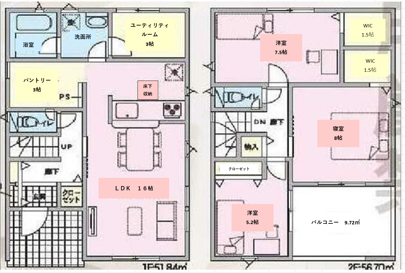 3LDK+ユーティリティルーム+パントリー